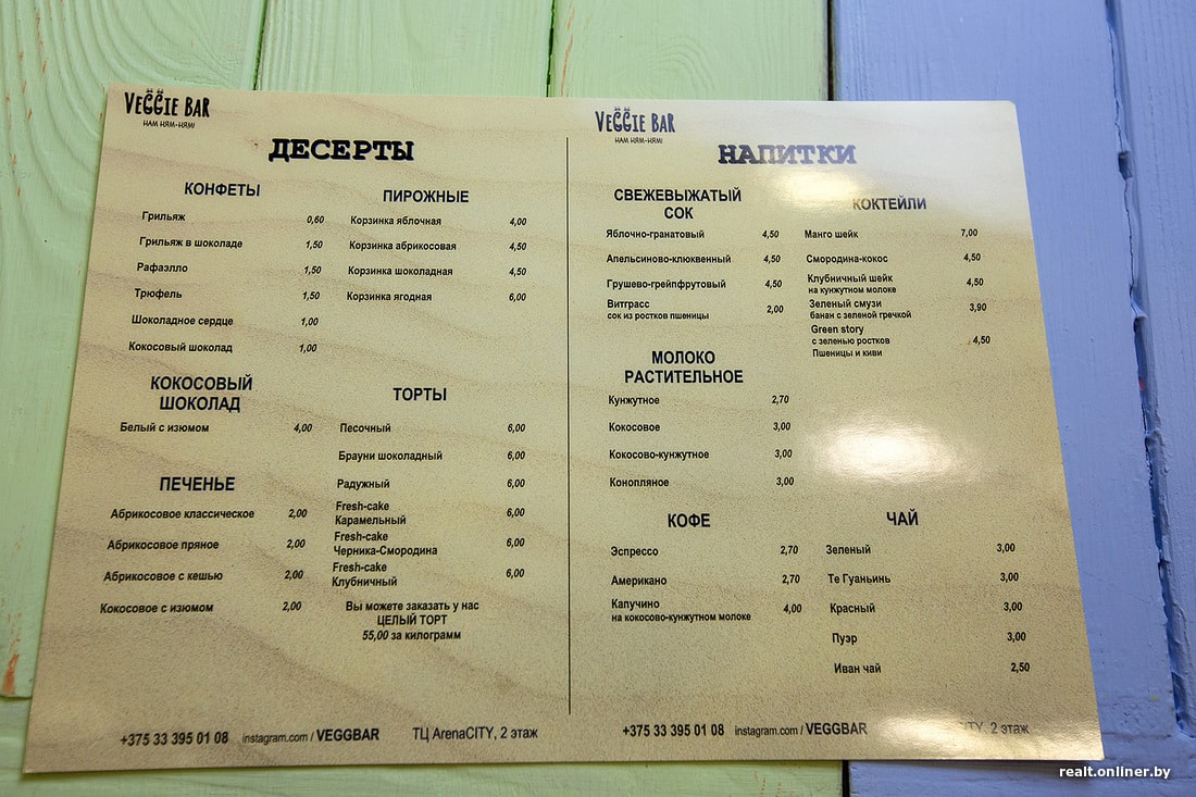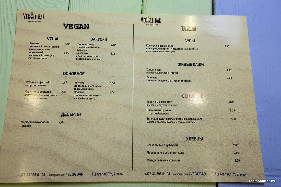 Денис надеется, что Veggie Bar разовьется в сеть по всему Минску. Первое кафе работает с 11:00 до 20:00 в будние дни и до 21:00 в воскресенье.