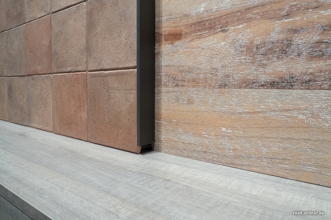 На фото ниже — деревянные мотивы в керамике от украинской фабрики Intercerama.