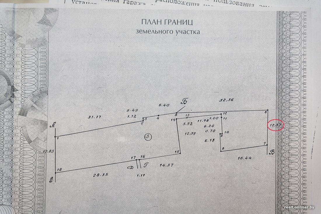 Параллельно с этим женщина, раз уж позволяло законодательство, решила оформить землю в частную собственность. Обратилась в сельсовет, и там все сделали. В июле 2003 года статус надела был изменен, и Цнянский сельсовет выдал женщине государственный акт на земельный участок площадью 0,0827 гектара, предназначенный для строительства и обслуживания жилого дома. Неотъемлемой частью документа является план границ земельного участка, где схематично изображен сложный по форме надел.