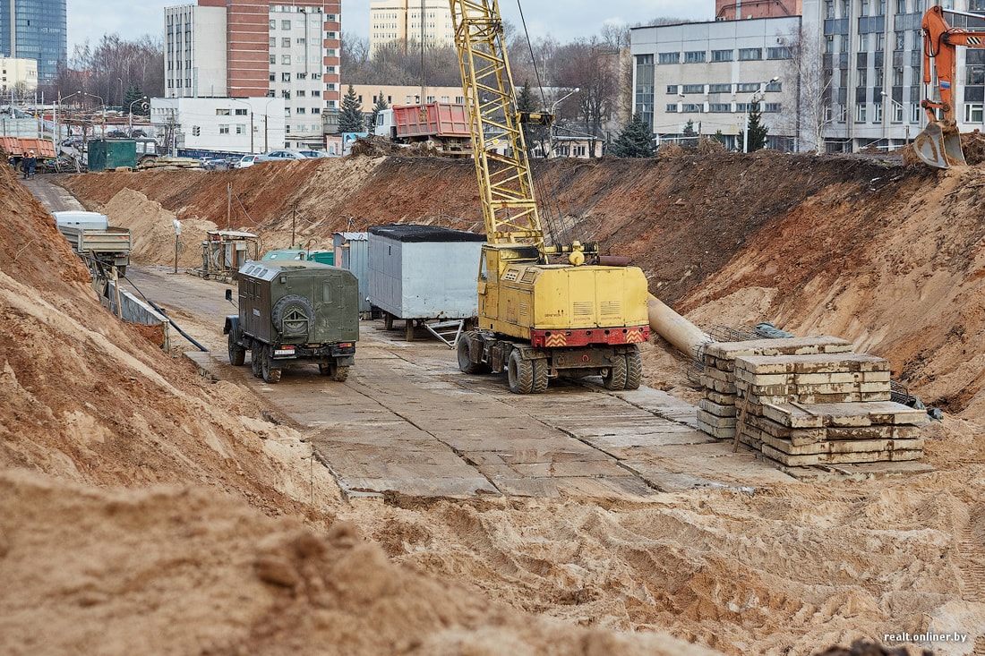 Запуск третьей ветки метро все еще остается для минчан чем-то призрачным: сроки начала эксплуатации отодвигались столько раз, что трепет от ожидания иссяк даже у самого терпеливого минчанина. Тем не менее работа под землей и на земле продолжается. Яркий тому пример — будущая станция метро «Площадь Богушевича». В декабре 2015-го, когда метростроевцы только начинали менять ландшафт, урезая «вековые» курганы, Onliner сделал снимки стройплощадки. Затем все, что происходило в столичных «глубинах», было скрыто за высоким строительным забором. И вот непрозрачную металлическую изгородь частично сняли, и мы можем наблюдать изменения.
