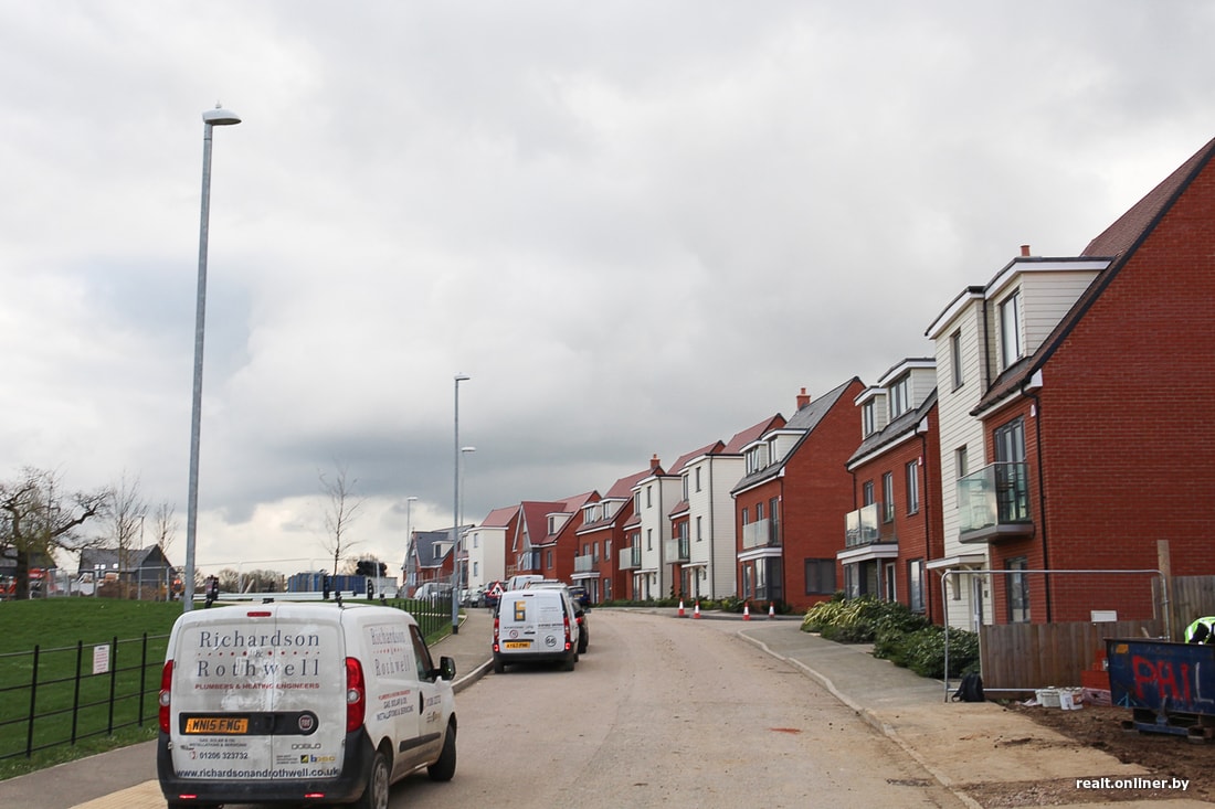 Остальные кварталы внешне выглядят сильно проще (по их меркам, не по нашим): оштукатуренный и покрашенный фасад сменяется выложенным от низа до самого верха однотонным клинкером. Впрочем, кажущаяся простота не должна сбивать вас с толку — жилье в 70 километрах от Лондона стоит очень даже прилично.