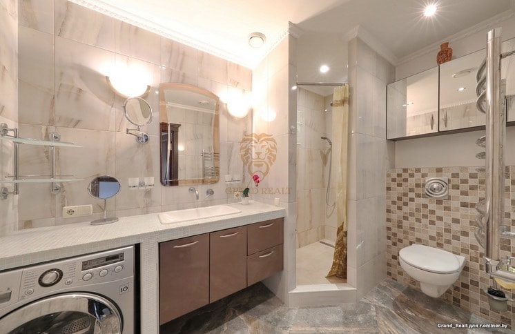 «2 санузла, большая ванная комната, сантехника и стеклокерамика от ведущих производителей. Современная встроенная, полностью оснащенная кухня. Проведена система кондиционирования. Удобная гардеробная при входе и достаточное количество шкафов. Функциональное использование большого пространства квартиры. Большие окна наполняют квартиру естественным светом», — перечисляет достоинства полностью готовой к проживанию квартиры агентство.