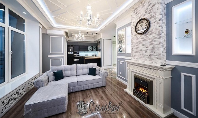 Высотка была построена еще в 2016 году, поэтому можно быть более-менее уверенным, что все уселось, устоялось и трещин в стенах появиться не должно. Дизайн квартиры яркий и запоминающийся: нестареющая классика в современной интерпретации. Высота потолков более трех метров. В хоромах два просторных санузла, много мест для хранения вещей и камин: хоть электрический, но свой. Стоит вся эта красота 718 454 рубля, или $340 000. В пересчете на один квадратный метр — 6318 рублей, или $2990. Зато заезжай и живи завтра.