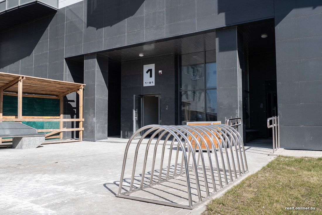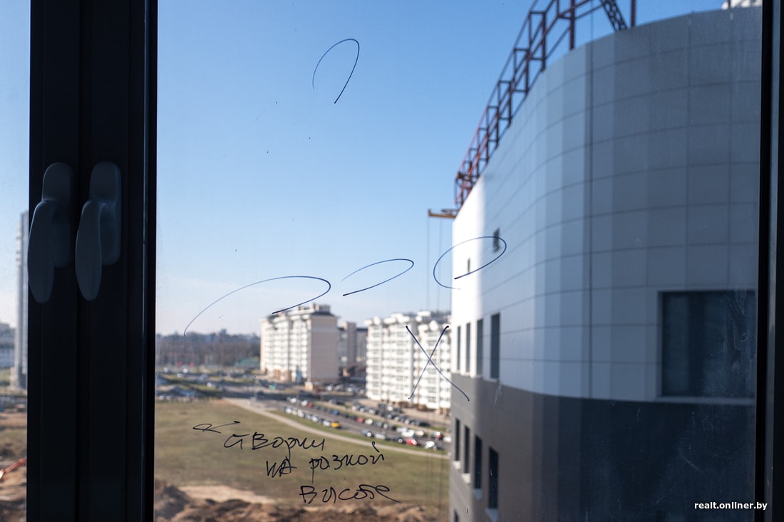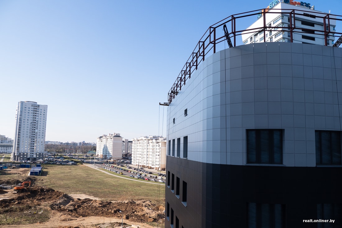 Появление этого дома должно было стать знаковым для Минска событием. И дело не в том, что в котловане засветился сам Ладутько, — архитектурная составляющая жилого комплекса была весьма недурственная. Округлые формы, террасы, изгибы, ступеньки… Казалось, это будет новое слово в мире строительства, и приехавшие на чемпионат мира по хоккею гости просто ахнут от восторга. Но все пошло не по плану: слетели сроки, упростился проект — и сегодня мы имеем то, что имеем: угловатую многоэтажку с сомнительной «внешностью» — в плане как расцветки, так и использованного фасадного материала. Но это только внешнее впечатление.