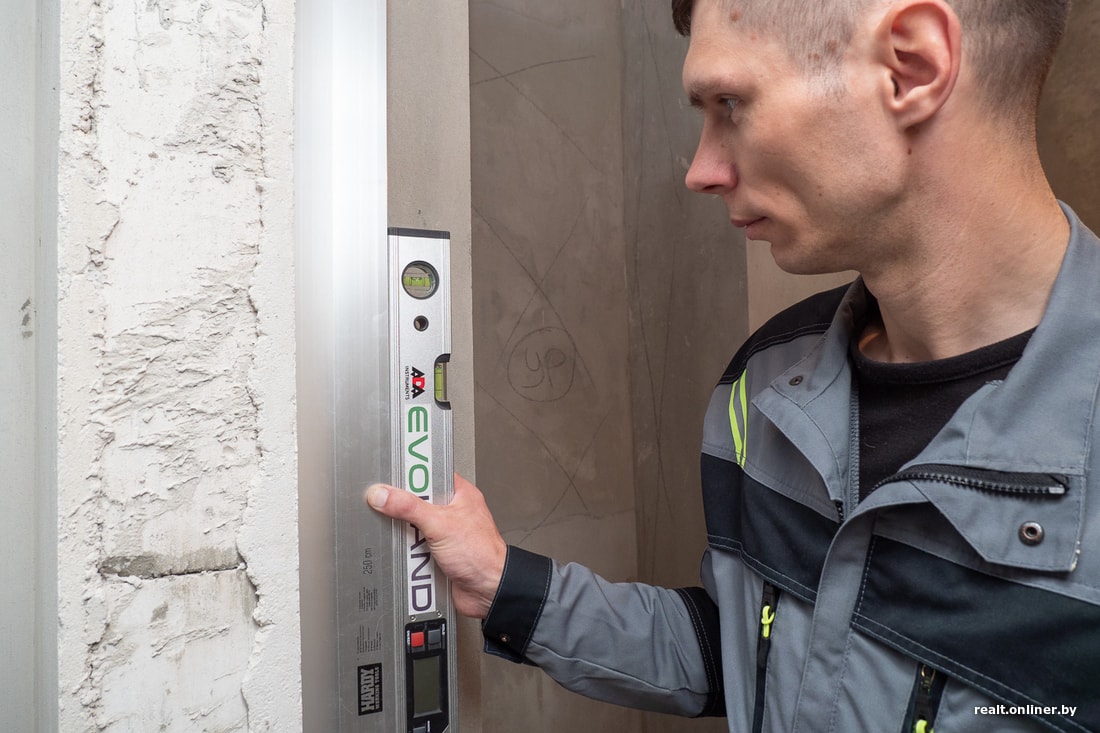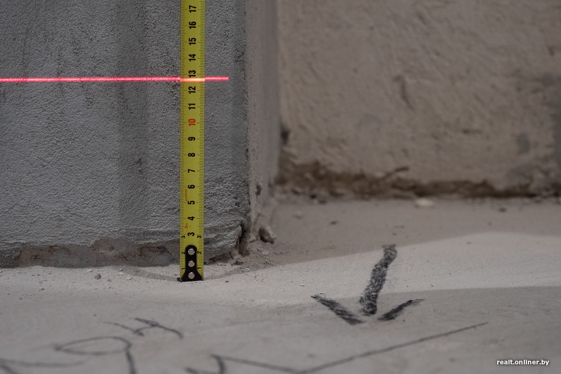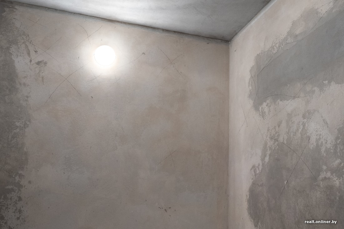 — Что касается стен, за исключением одного места у окна, где есть завал на 12 миллиметров и очаги неприлегания, все остальное сделано достаточно хорошо: отслоений штукатурки больше нет, плоскость и вертикаль в пределах допуска. Можно сказать, что работали мастера, которые знают свое дело, — отмечает Александр Скок.