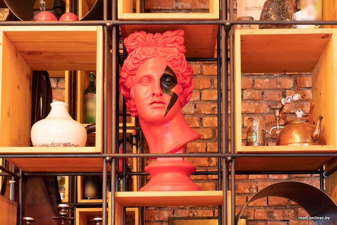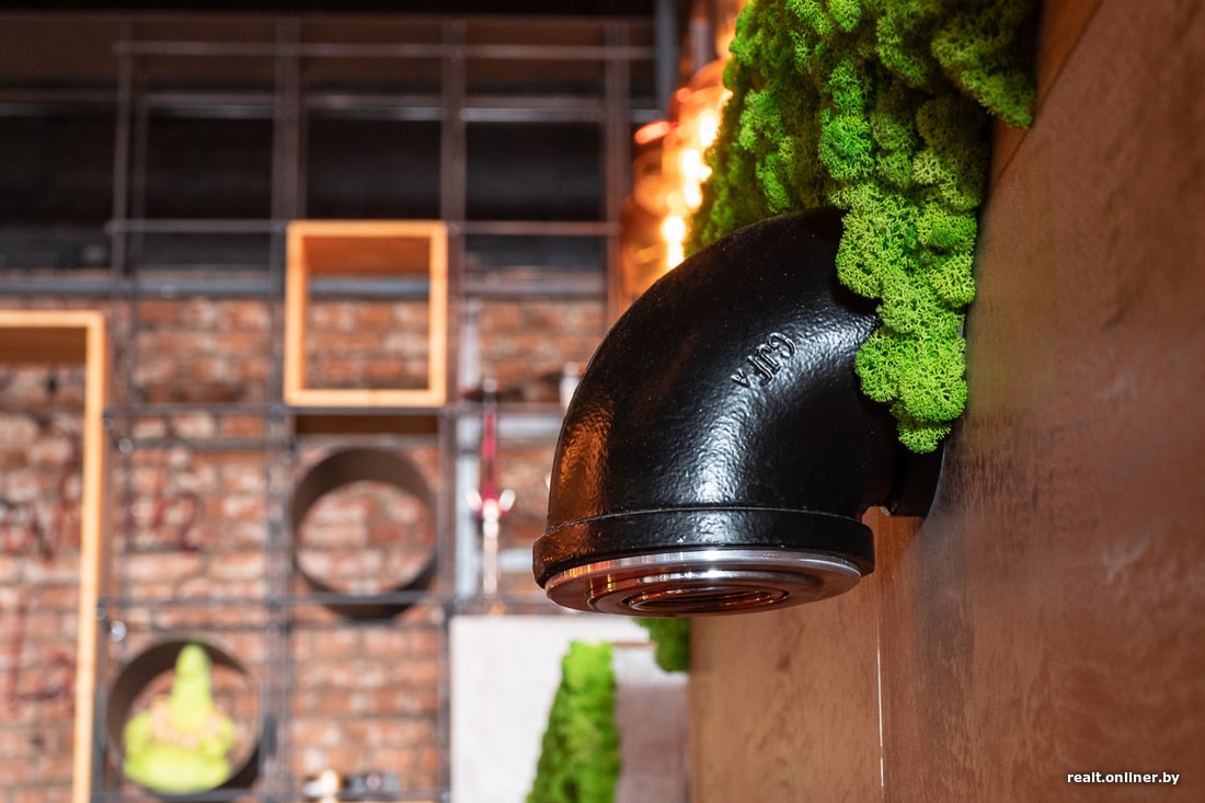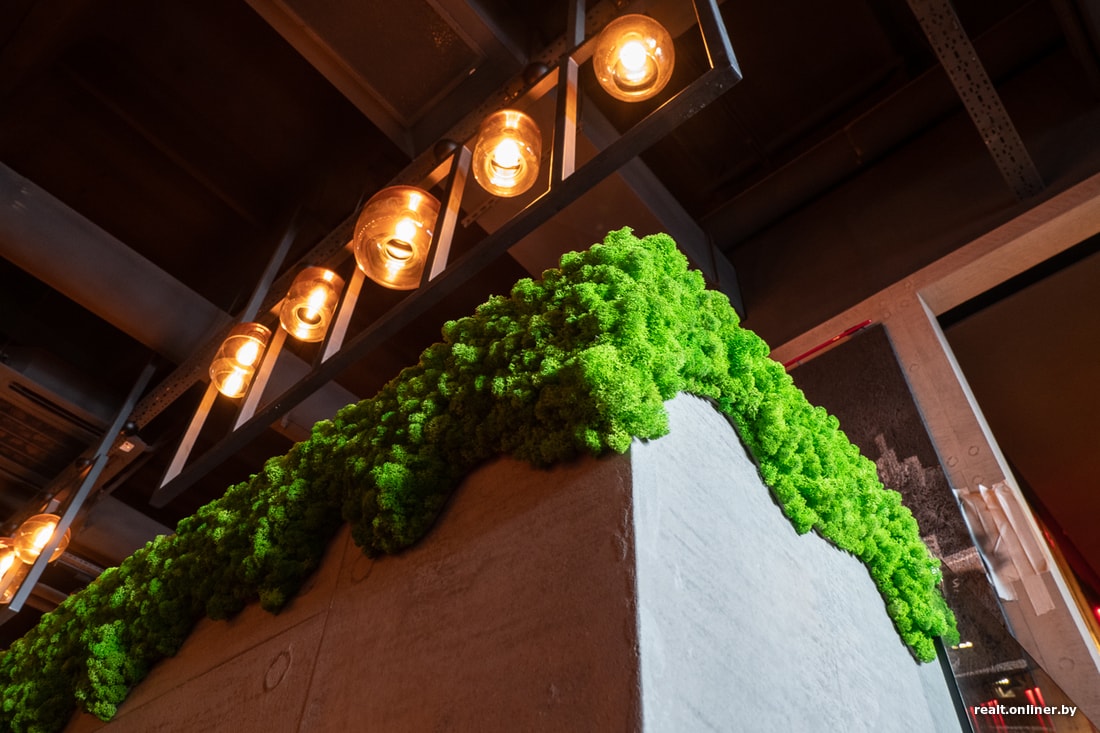 Hookah Place — это франшиза, но здесь, во флагманском заведении, мы добавили много авторских моментов. Что касается освещения, то оно будет преимущественно приглушенным — дневной свет будет лишь едва пробиваться через жалюзи. Для того чтобы освежить и разбавить помещение, мы добавили стабилизированный мох, эклектичные «статуи».