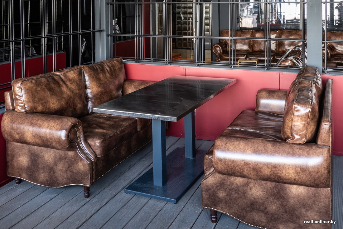 Веселые тканевые диванчики уступили свои позиции массивным и мягким кожаным диванам, стулья со спинками — креслам, в которых утопаешь. В заведении появились ВИП-зоны на 7—8 человек (если уплотниться, то можно и больше): одна в основном зале и две на террасе.