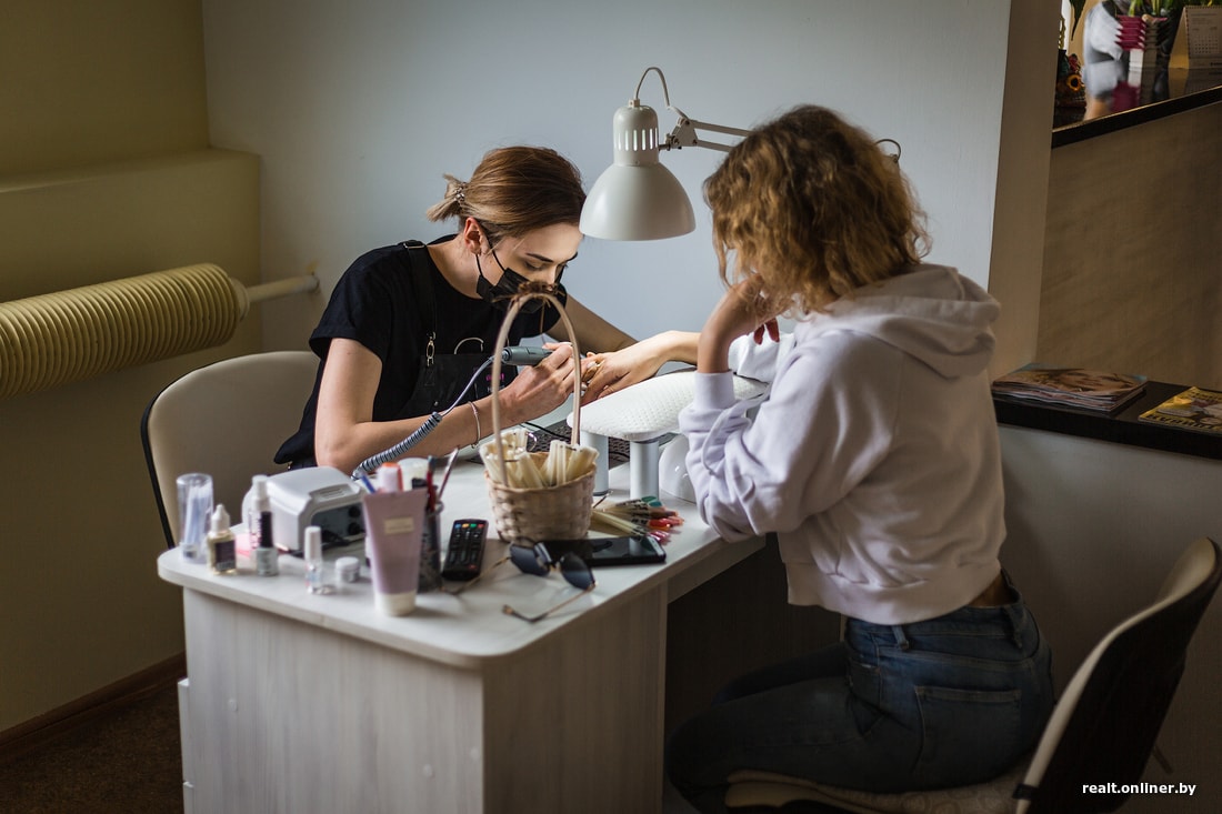 Еще в прошлом году в салоне работали только два человека, сегодня же здесь четыре мастера по маникюру, два — по педикюру, один — по оформлению бровей, визажист и администратор. Максим говорит, записаться у людей получается не всегда: очередь.