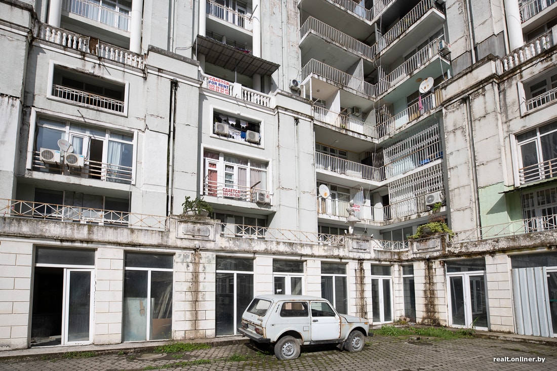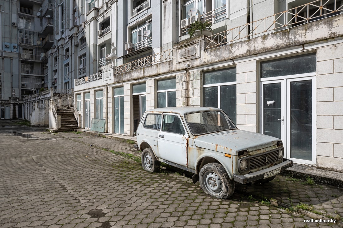 Первые этажи, где должны были разместиться рестораны, бутики и детский развлекательный центр, превратились в мусорную свалку, многие витрины разбиты. На контрасте со стерильными улицами Батуми, где не встретишь даже окурка, жилой комплекс выглядит по-настоящему заброшенным.