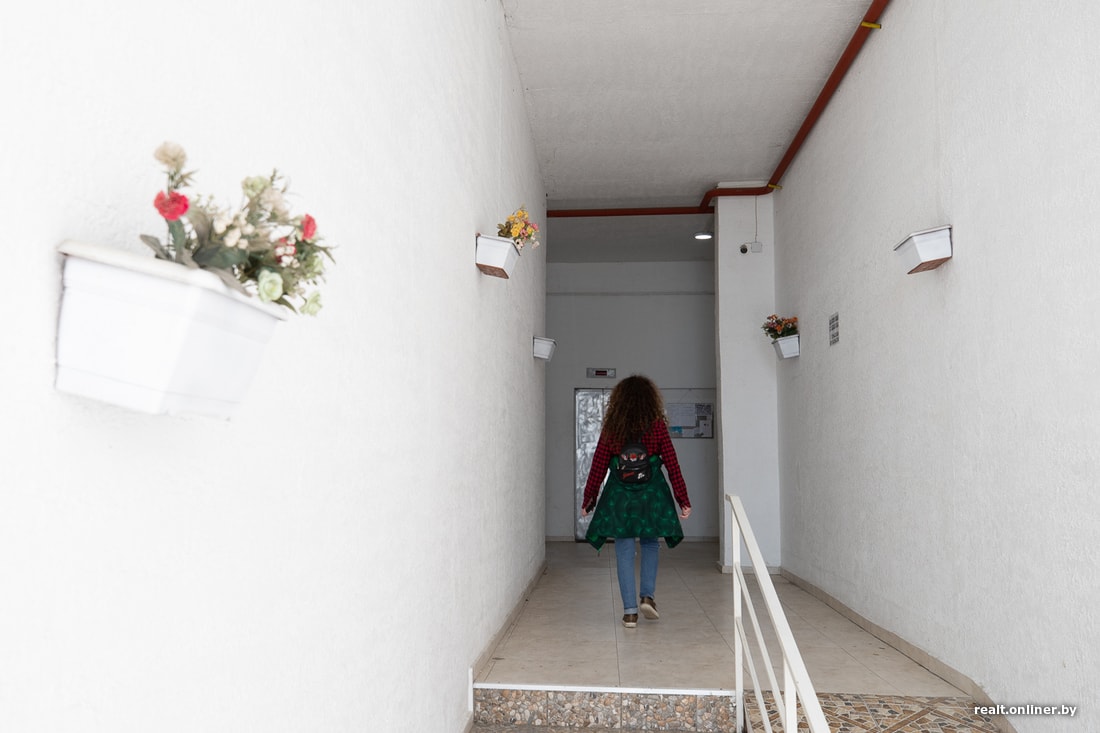 Надо отдать должное жильцам: они подсуетились и привели подъезд в приличное состояние, несмотря на то что полностью оплатили застройщику не только отделку общих мест, но и ремонт в квартирах. Правда, чем выше этаж, тем скромнее отделка и круче лестница, а вершина айсберга — пять стихийно надстроенных этажей, вообще лишенных какой-либо отделки: бетон себе и бетон.