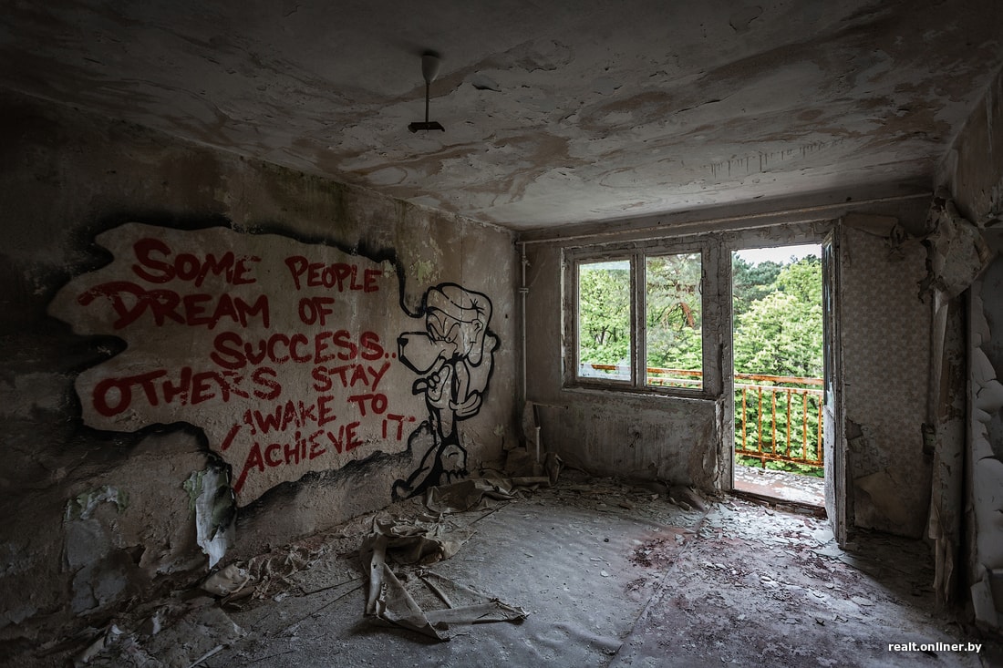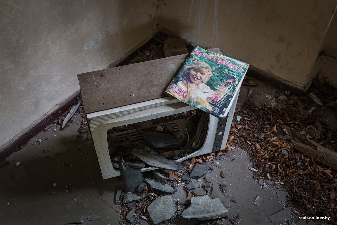 Жилые помещения еще хранят в себе следы пребывания жильцов. Осталось много различных предметов быта и интерьера. Вся периодика и литература, валяющаяся на полу, — исключительно на русском языке.