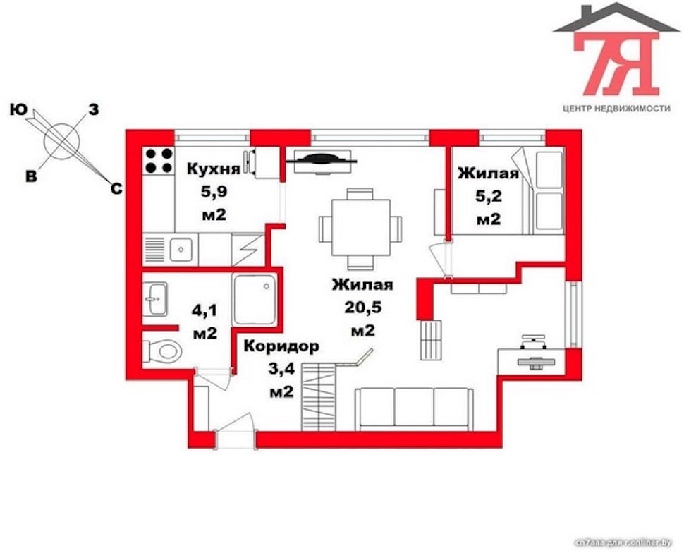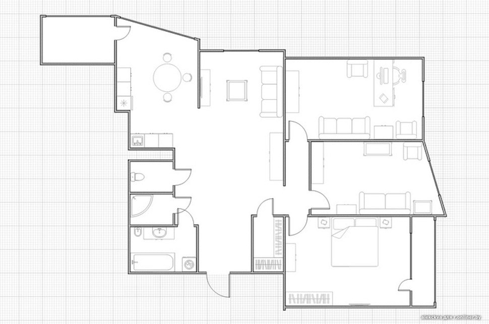 Удачное расположение — до метро «Парк Челюскинцев» десять минут неспешной ходьбы — одно из преимуществ продаваемого за почти 135 000 рублей, или $65 000, объекта. Что касается распределения площади, то на жилую часть отведено 26 «квадратов», кухня занимает 6 метров, санузел в квартире совмещенный — 4 «квадрата». Правда, как упоминалось раньше, хозяева поколдовали с планировкой и получили 20-метровую гостиную и 5,2-метровую спальню, также получилось выделить угол под кабинет, со своим окном, между прочим.