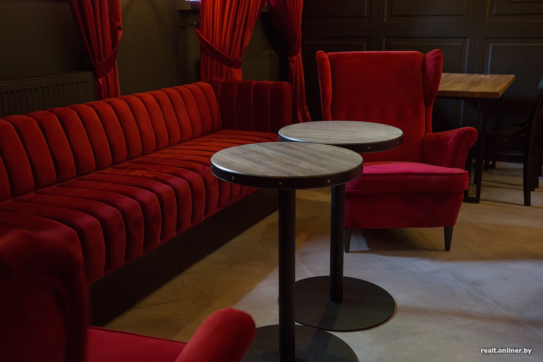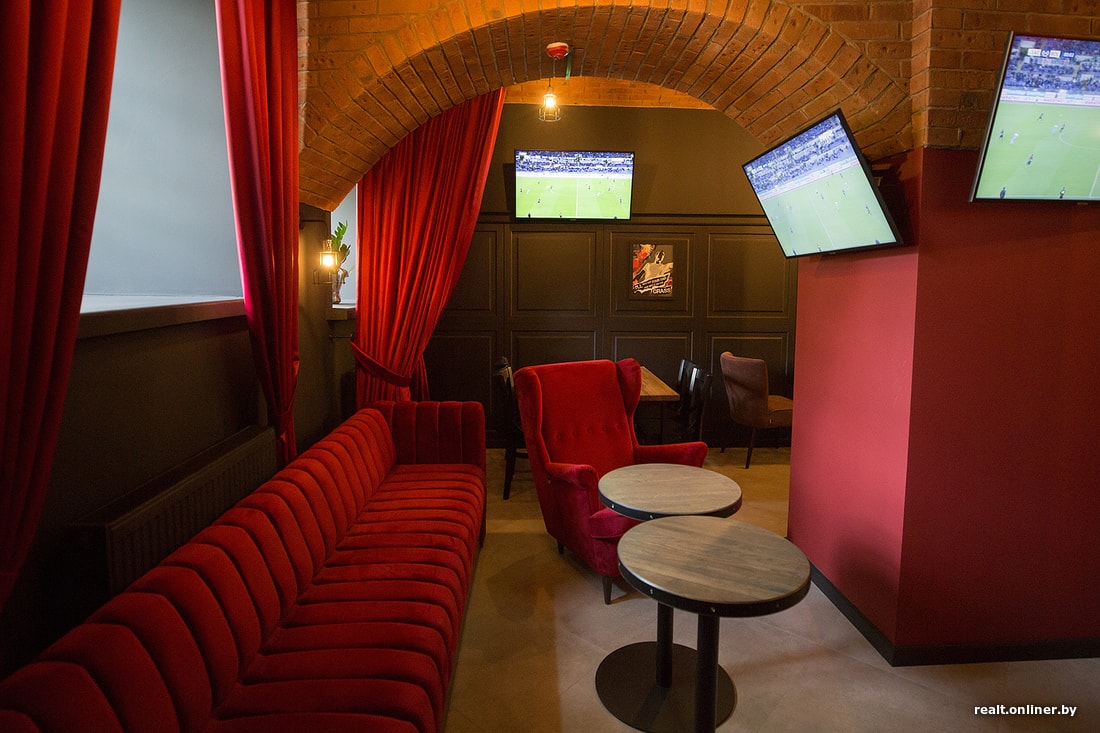 — Дизайном занималась специалист, с которой мы уже сотрудничали при создании бара Kew London. Бордовый и черный цвета — самое популярное сочетание в английских пабах, и нам хочется, чтобы наш паб ассоциировался с Англией, британским футболистом.