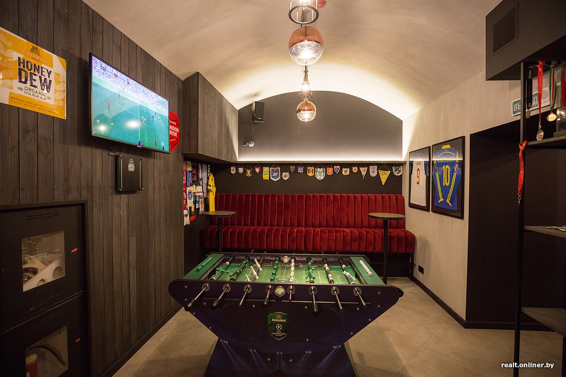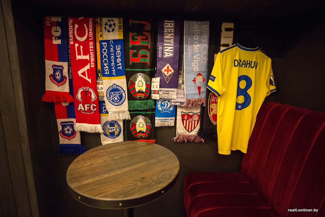 — Бар открыт в коллаборации с действующими футболистами сборной Беларуси, и логично, что все здесь должно быть посвящено футболу, — рассказывает Onliner Михаил. — Как это произошло? Мой коллега, который работал барменом в El Pushka, давно дружит со Стасом Драгуном, и я тоже с ним подружился. Как-то мы выбирали, где посмотреть футбол, и поняли, что футбольных пабов в Минске не так много: где-то накурено, где-то нет мест, где-то кухня не устраивала.