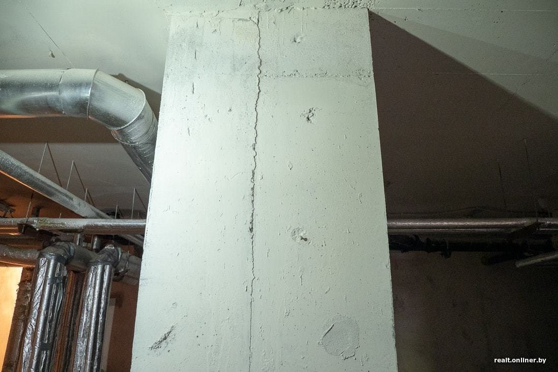 — На словах обследователи сказали, что в подвале все колонны из песка, — рассказала Onliner Екатерина, жительница второго подъезда в проблемном доме на Широкой. — Заканчивается ремонт колонны во втором подъезде. По квартирам прошли обследователи предприятия «Стройреконструкция», осмотрели с фонариком стены, зафиксировали трещины, которые видны невооруженным глазом. Вчера в одной из квартир отлетел кусок штукатурки, в другой — увеличились трещины. Вот так мы и живем каждый день.