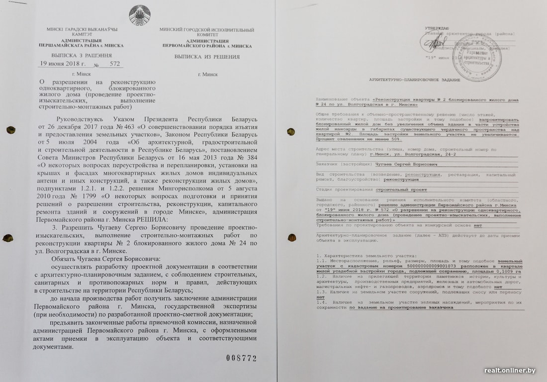 — Если документа о предстоящем изъятии земельного участка еще не существует, то собственнику в первую очередь надо обратиться в свой исполком с заявлением на проведение реконструкции, — рассказывает специалист компании pereplan.by Сергей Блинков, который помогал минчанину со всеми бумажными этапами. — Обычно это выглядит так: человек приходит в «Одно окно» с копией техпаспорта, на которой просто ручкой нарисовано, какие изменения он хочет внести (так называемая план-схема). Совет: до того как пойдете в «Одно окно», обратитесь к архитектору района за консультацией — узнайте, что можно и что нельзя делать в вашем случае, потому как закон зачастую трактуется по-разному: что разрешено в одном районе, может быть запрещено в другом. Увы, это реалии.