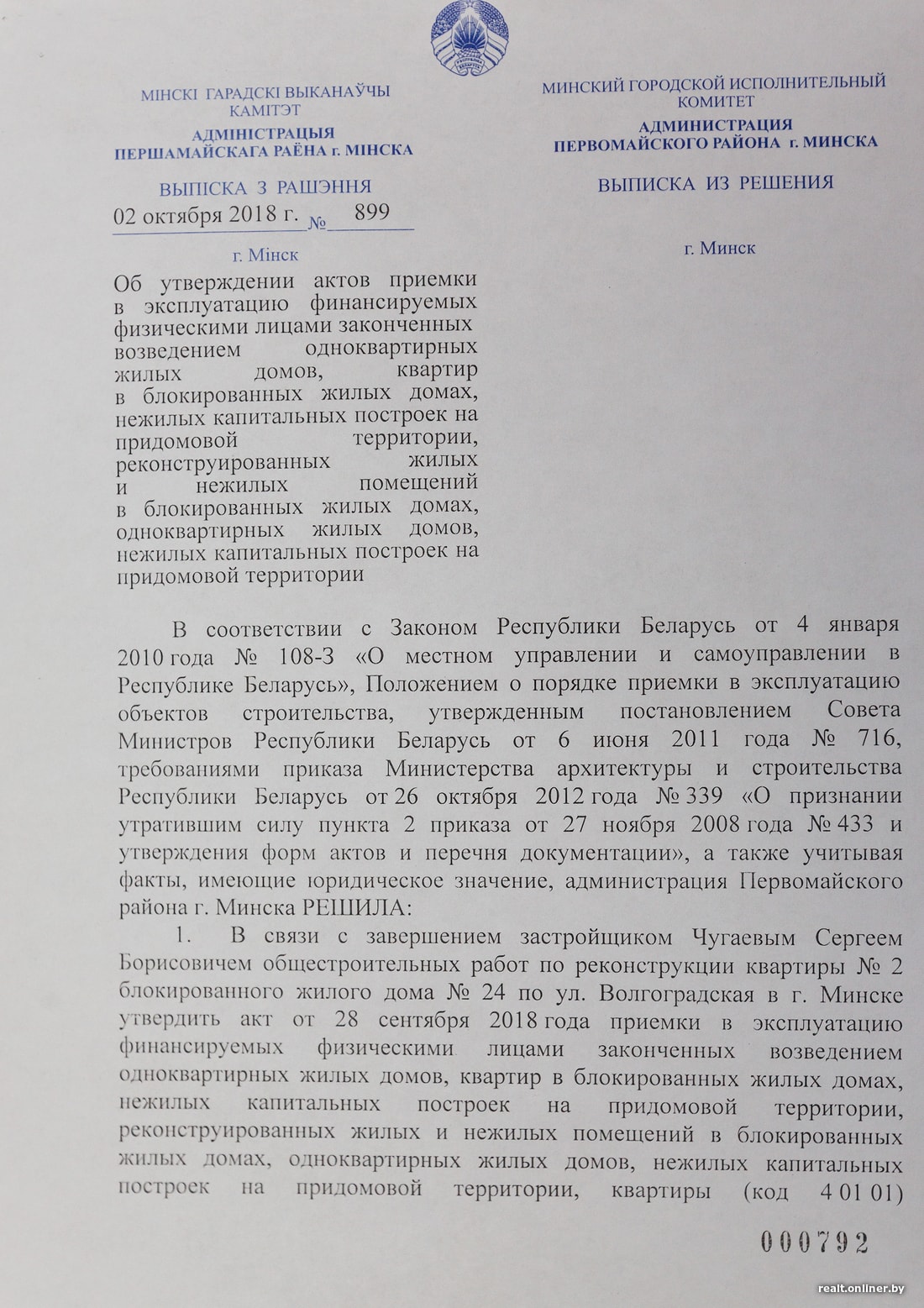 Минчанин Сергей успел получить все необходимые документы в сентябре 2018-го. А уже в ноябре он, как и остальные соседи, увидел злополучное письмо от городских властей — решение о предстоящем изъятии земли для государственных нужд. Так что в любой момент в течение двух лет к горожанину могут нагрянуть с выселением и сносом (но он намерен бороться до последнего). Мужчина недоумевает: как так — одной рукой разрешают реконструироваться, а другой тут же сносят? Где логика? Ответов на такие экзистенциальные вопросы ни у кого нет. А с другой стороны, никто не знает, не «протухнет» ли и это решение, как уже бывало в Минске не раз.