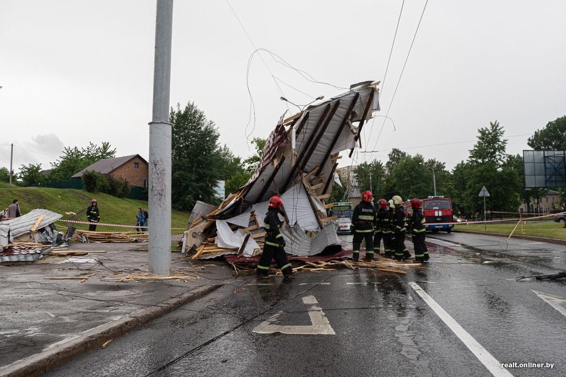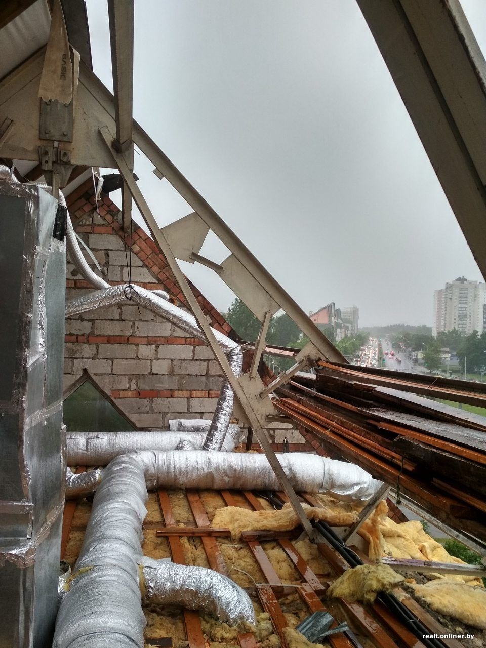 Вчера по Минску прошел настоящий смерч, который меньше остальных пощадил частный сектор на Запорожской площади. Он сорвал огромный лист металлочерепицы с одного из домов, и этот лист натворил бед: перекрыл две полосы движения, оборвал контактную троллейбусную сеть и повредил три автомобиля. Мы опубликовали много фото с места событий и даже видео того самого момента, которое выглядит по-настоящему устрашающе. А сегодня Onliner побывал на Запорожской, выяснил, как поживают хозяева коттеджа, который в три секунды лишился крыши, и поговорил с их соседом, дому которого тоже досталось. Подробности и фото последствий изнутри пострадавших домов — в репортаже Onliner.