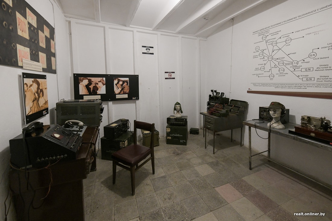 Тоннели уходят за горизонт, в боковых ответвлениях оборудованы жилые и служебные помещения, техническая инфраструктура с электрогенераторами, фильтрами воздуха и воды, потом спуск на уровень ниже, и все повторяется еще раз — примерно это и ожидаешь увидеть от объекта такого рода. Наверняка и в нашей стране, и тем более в ее восточных соседях существуют похожие сооружения, и даже масштабнее, но в Тиране есть возможность увидеть устройство всего гигантского комплекса площадью несколько тысяч квадратных метров вплотную. Именно в такой обстановке руководители страны планировали управлять ее героической обороной от агрессии противника.