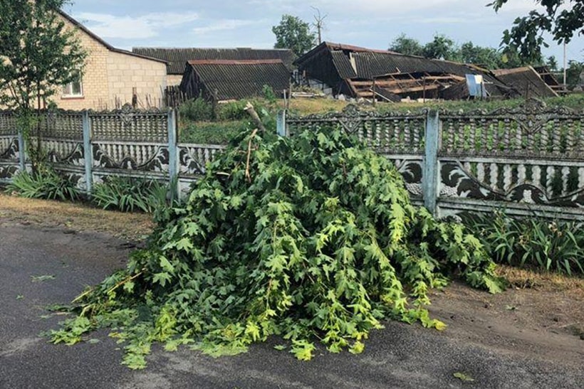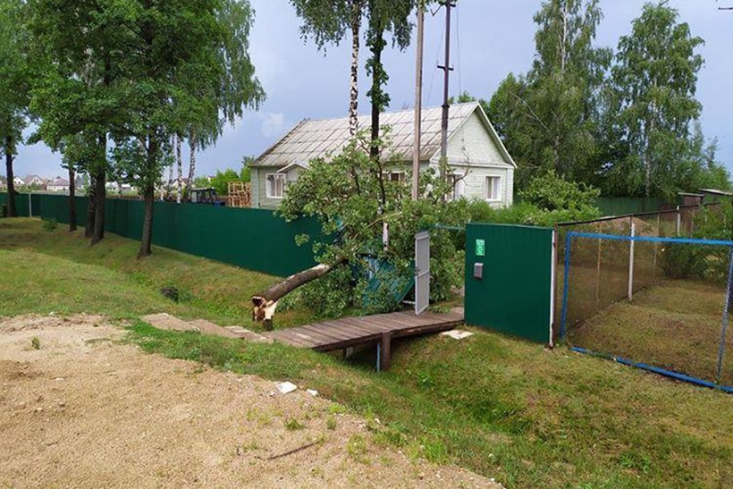 Брестская область, деревня Озерница. Ветер валил ограждения и швырял деревья на проезжую часть.