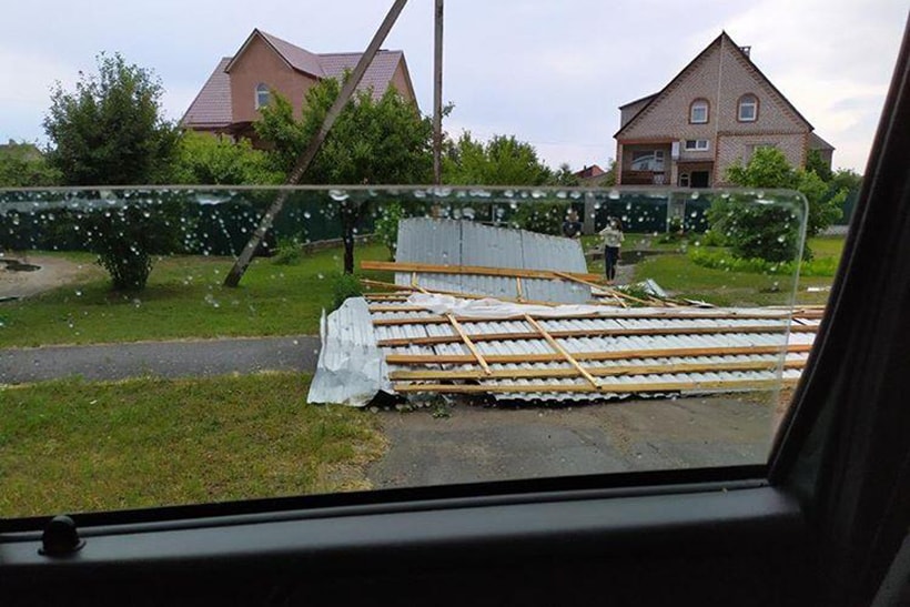 Логойский район, деревня Айнаровичи. Град размером с куриное яйцо выбивал окна, повреждал крыши домов.
