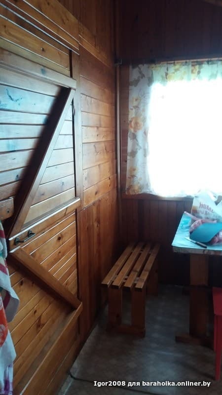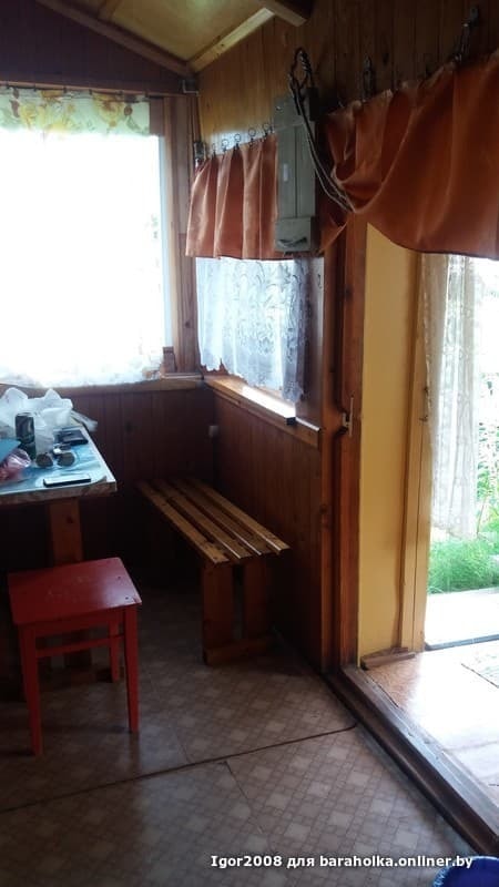 Домик утеплен, обшит вагонкой (комната, кухня, веранда), находится в садовом товариществе „Хозяюшка“. На участке растут яблони, груша, смородина, малина, ежевика. Есть газон. Имеется весь необходимый инвентарь», — краток владелец метров.