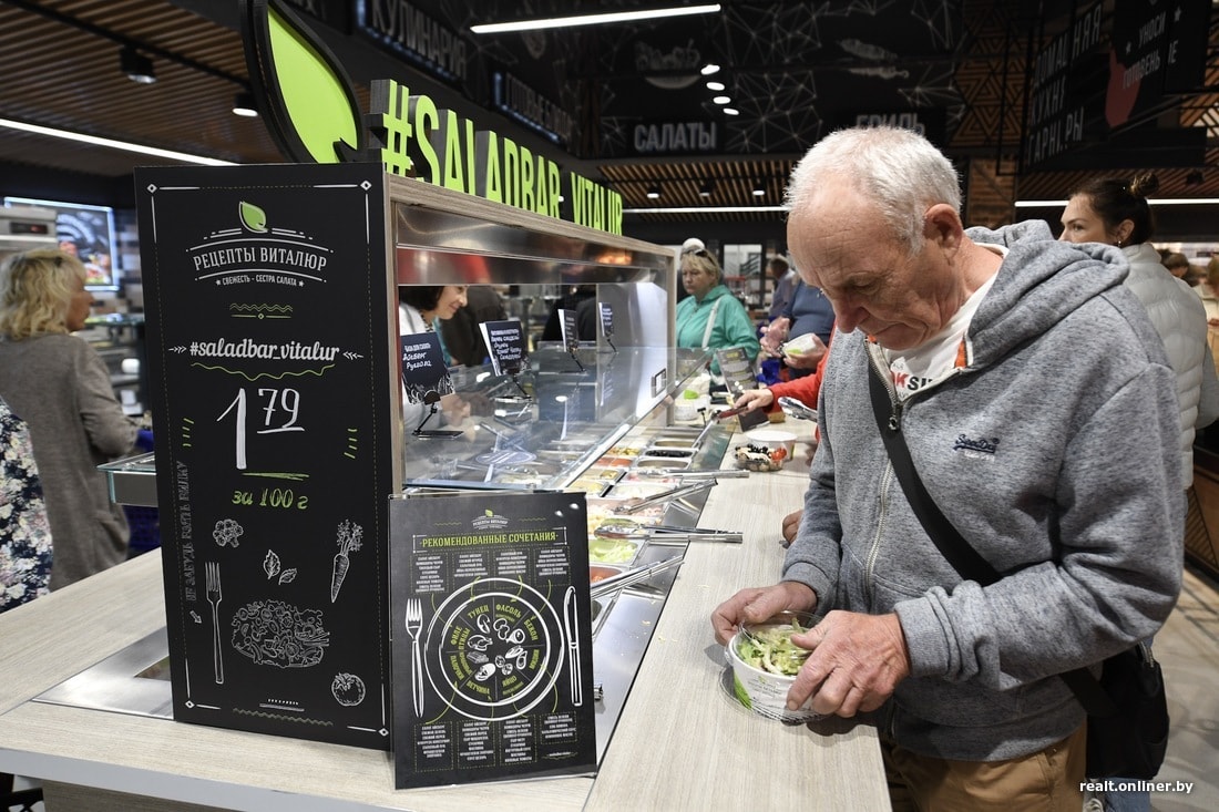 В обновленном магазине будет и то, что уже можно было видеть в других супермаркетах сети: салат-бар; чистка, разделка и маринование рыбы; приготовление фарша и маринование мяса; нарезка сыра, колбас на слайсере; приготовление свежевыжатого сока из выбранных фруктов; возможность помыть фрукты по просьбе или заказать торт.
