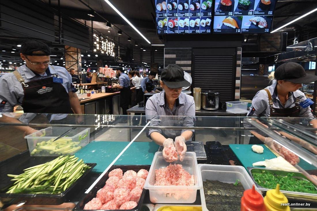 Из приятных изменений: появилась зона фуд-корта и так называемый «Восточный базар». Что касается фуд-корта, то его площадь 185 «квадратов», на ней может одновременно находиться более 40 посетителей. В меню — домашняя кухня, пицца, шаурма, бургеры, суши, десерты, напитки. В барной зоне фуд-корта также можно купить весовой чай и кофе (зерновой кофе еще можно и помолоть). Работает фуд-корт весь день.