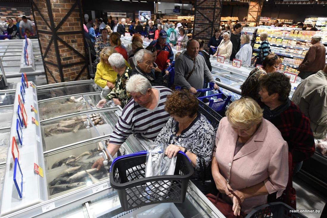 По традиции приветствовать новичка, а заодно «пробежаться» по акциям пришли местные жители. Ажиотаж на открытиях — это уже стандарт торговли. Если вдруг народа, ждущего под дверями отмашки, нет, значит, что-то пошло не так. К слову, на открытии предыдущего объекта в этих краях народ хватал подсолнечное масло (с добавлением оливкового). В этот раз накинулись на мясо.