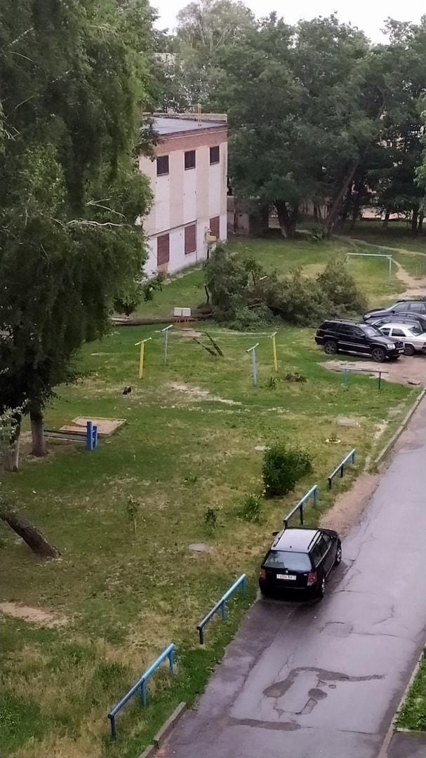 В Речице ветер разбросал деревья, у кого-то отнял москитную сетку. Фото публикует сообщество «Речица Автопомощь».