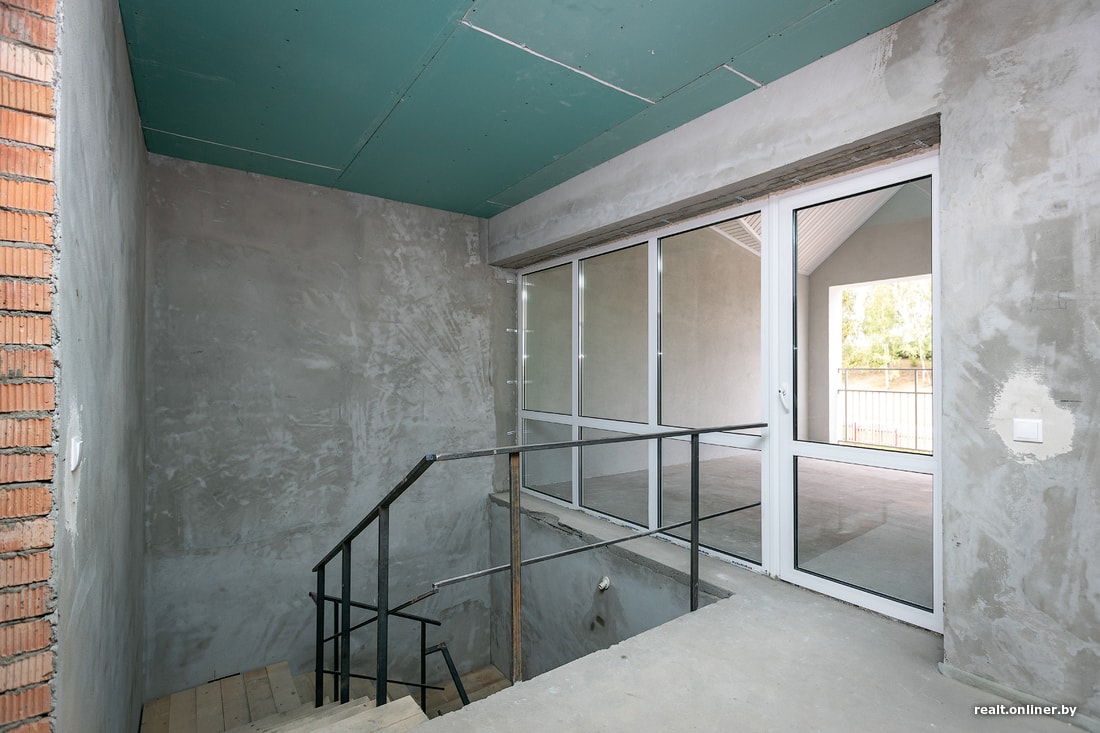 Таунхаусы появились на окраине поселка, возле автодороги Р40. До Минска отсюда 15 километров. Стены сложены из керамзитобетонных блоков толщиной 400 мм, фасады оштукатурены и выдержаны в бело-серой гамме — смотрятся неплохо. Заказчиком проекта выступил УКС Миноблисполкома, генподрядчиком — компания «Металлстройпрофиль», известная по жилым комплексам «Тихая гавань у пирса» в Ратомке и на улице Волмянский Шлях в Колодищах.