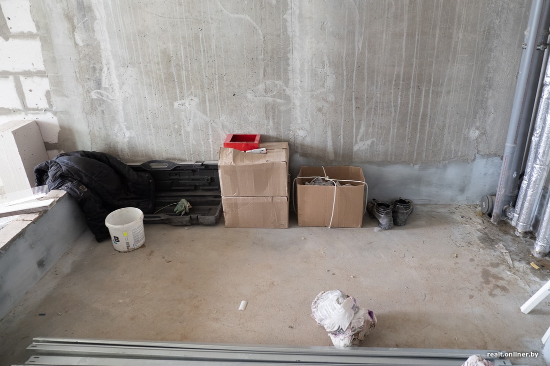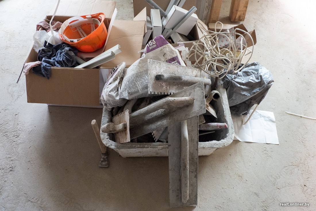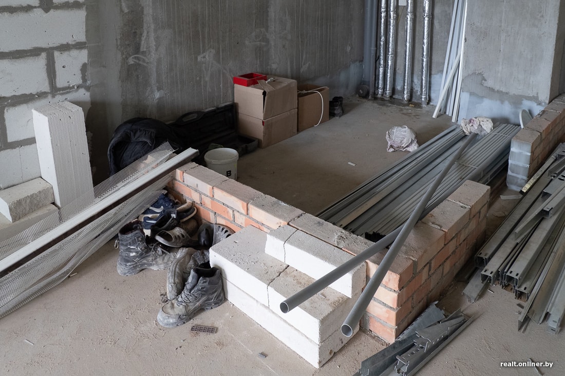 В «евродвушке» минчанина около 46 «квадратов» под крышей и терраса. Кухонная зона «сослана» в коридор, санузел — совмещенный и возведен (уже по традиции) на четыре кирпича. В этом, в общем-то, сюрпризов нет. Неприятным открытием для Андрея стал хлам в квартире. В свои апартаменты минчанин попадал уже и раньше и жаловался представителям застройщика на стихийный склад. В ответ ему пояснили: здесь была комната ключника, поэтому ничего удивительного в этом нет. Однако несмотря на просьбы прибраться, к моменту приемки полезные и не очень вещи все еще были на своих местах.