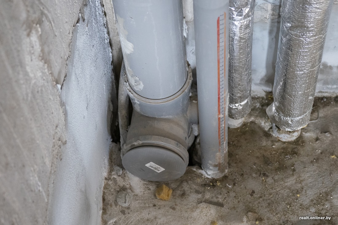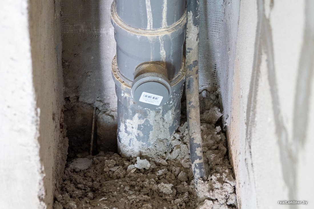 Из интересного: отверстие в вентканале было забито мусором (благо при освобождении выяснилось, что работает вытяжка как надо), входная дверь поломана (неужели ключника закрыли снаружи и он пробивал себе путь на свободу?), а место прохождения канализационных стояков не заделано раствором — общайся с соседями напрямую.