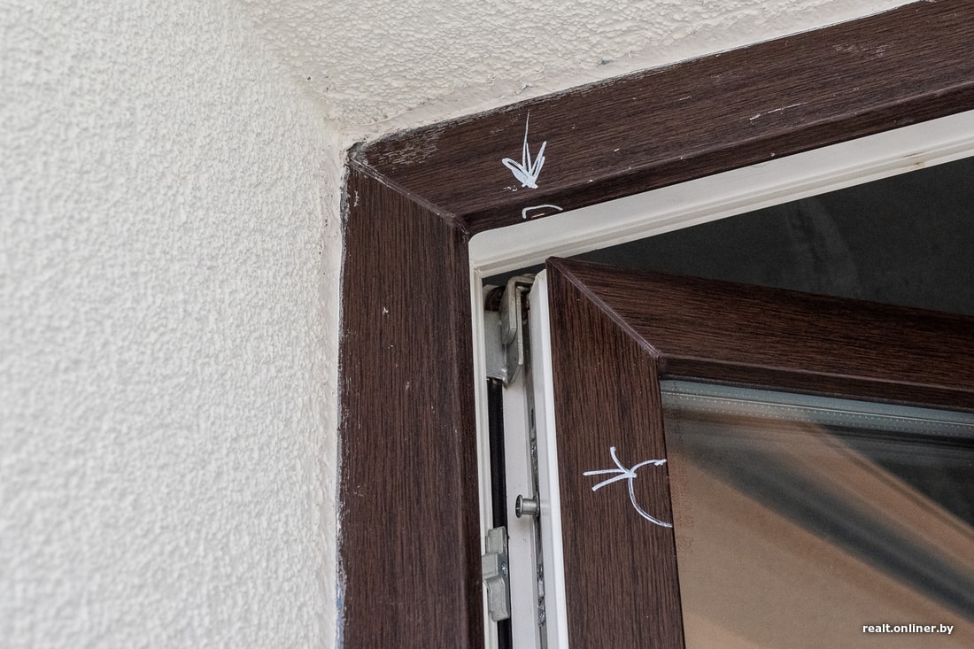 Есть и такой момент: монтажный шов по низу одной из рам выполнен неправильно: вместо того чтобы сбить лишний раствор и нормально запенить, рабочие упростили себе задачу и запенили вокруг «нароста». Конечно, это надо переделывать: пены за наплывами нет.