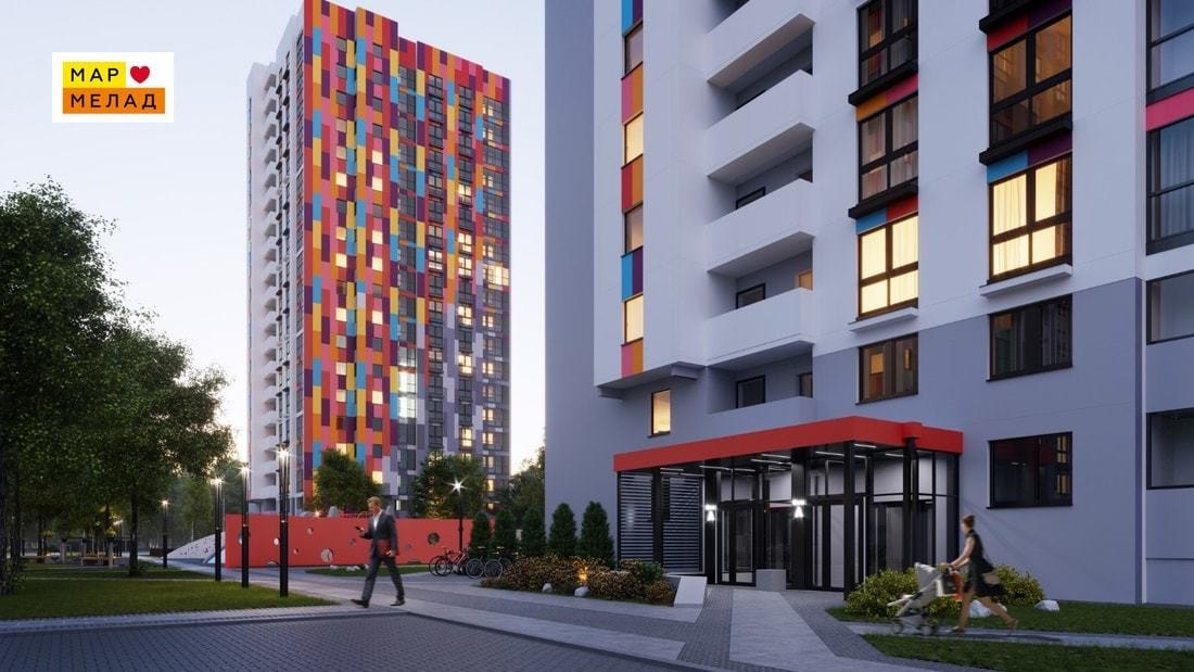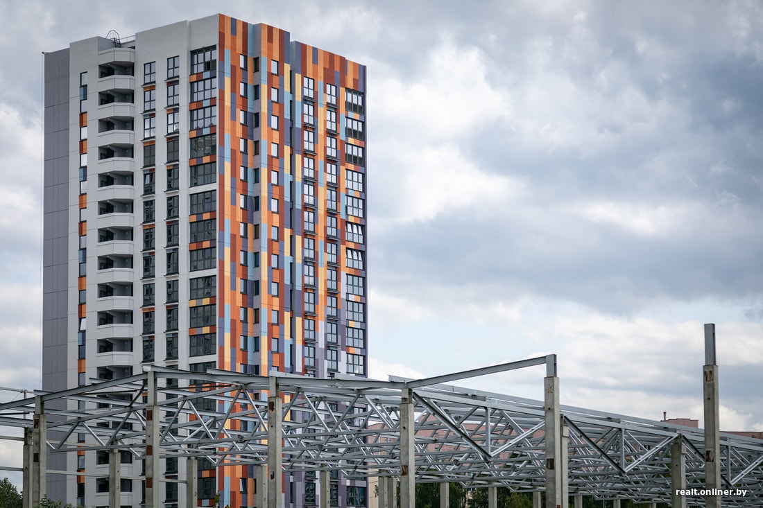 Жилой комплекс «Мармелад» строят в Военном городке с середины 2018 года. Когда «Трайпл» только запускал свой проект на три дома с двором без машин, то обещал удивить горожан новым обликом МАПИДовской «панельки» — панорамные окна, обновленные планировки, полноценное лобби на первом этаже и яркую раскраску домов. А как известно, запоминающийся фасад — диковинка для Минска еще бóльшая, чем, к примеру, лоси на дороге. И вот не за горами то время, когда первую многоэтажку должны сдать, а мы можем посмотреть, что же там намудрили с «боевой раскраской».