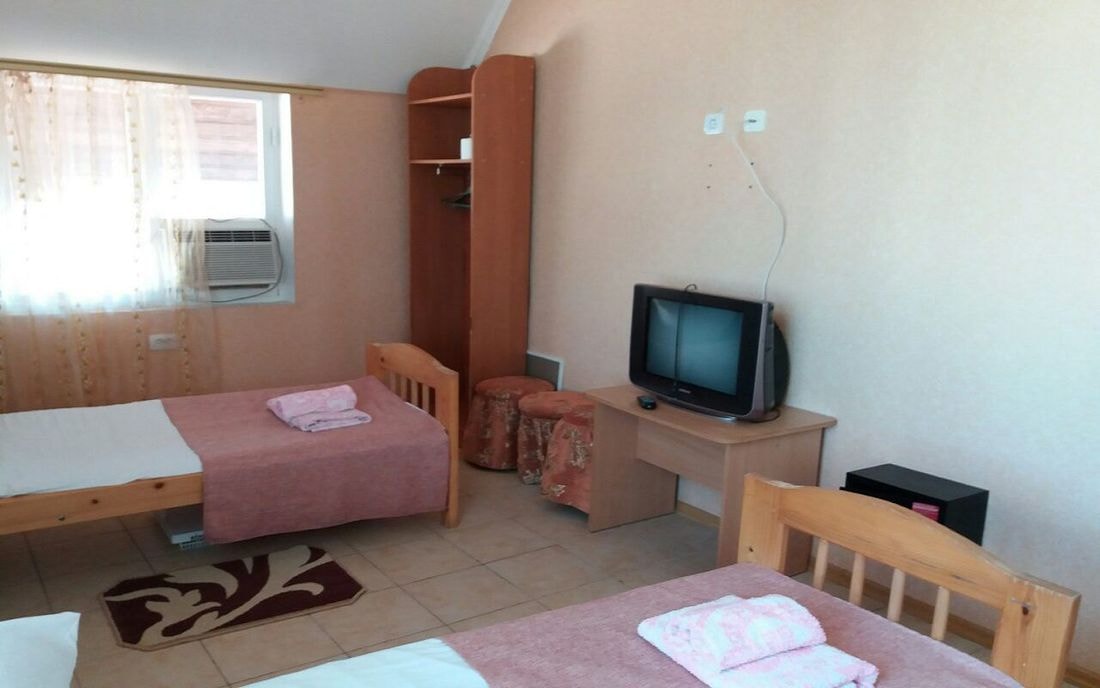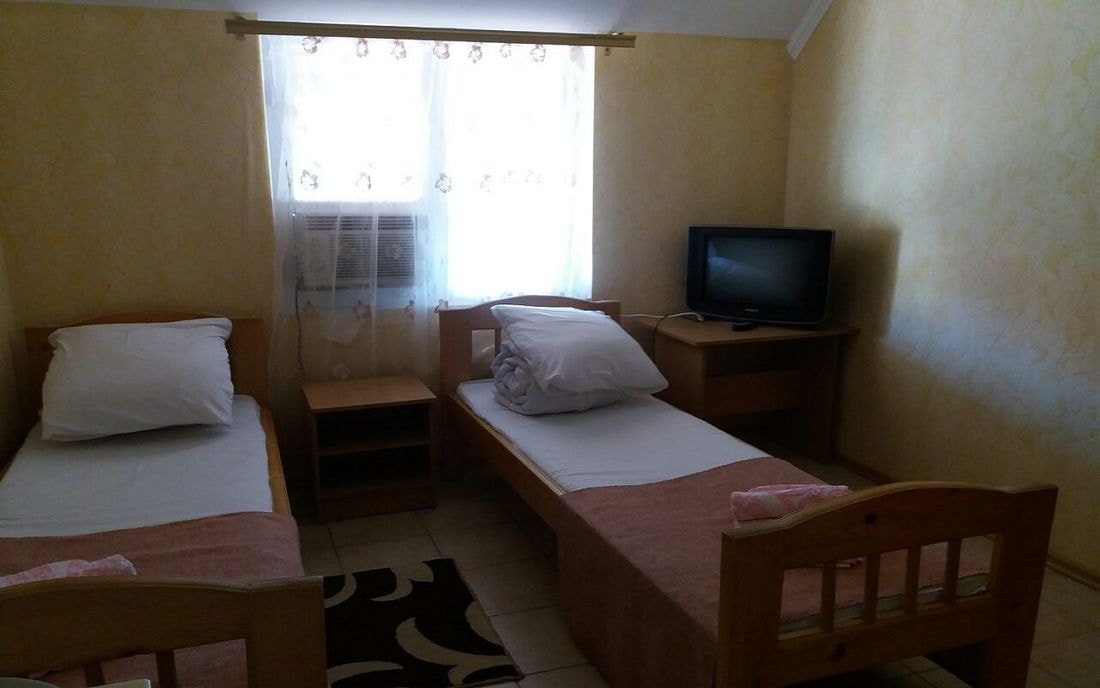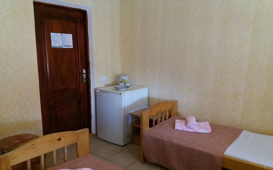 Так номер описывается на сайте туроператора (орфография и пунктуация сохранены): «Номер состоящий из двух отдельных номеров с общим с/у. В блоке 2-местный и 3-местный номера. В 2-местном номере: две односпальные кровати 90х190см, холодильник, кабельное ТВ, оконный кондиционер. В 3-местном номере: три односпальные кровати 90х190см, холодильник, кабельное ТВ, оконный кондиционер».