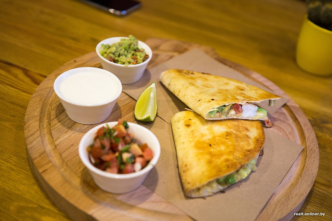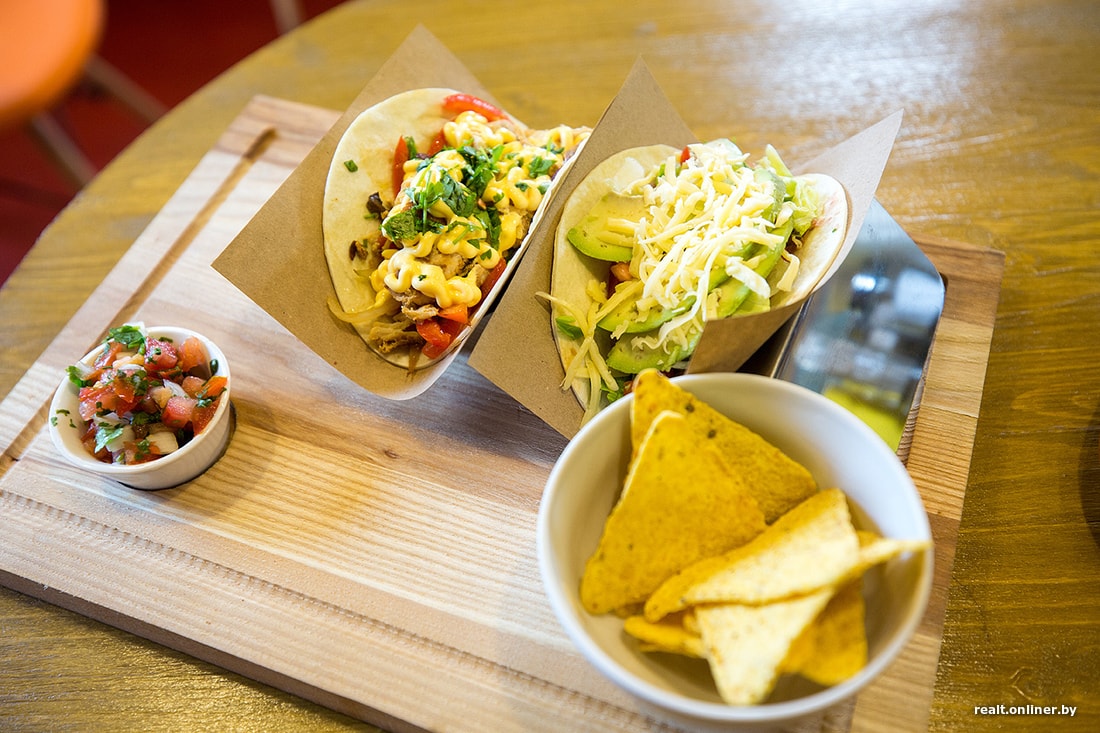Такерия, как легко догадаться, популярная в Мексике точка, где делают тако. Это такие кукурузные лепешки с начинкой внутри. Странно, что здесь их всего четыре вида. Цены покусывают, конечно, но минчане привыкли, что владельцы заведений считают их мажорами, и рады стараться платить.