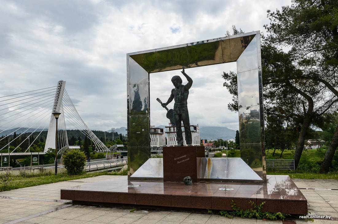 Еще в Подгорице есть две симпатичные реки и несколько мостов, через них переброшенных. У пешеходного с названием «Московский» установлен несколько неожиданный памятник Владимиру Высоцкому — вероятно, самый привлекательный местный объект для туристов, родившихся в СССР. Оказывается, Высоцкий два раза приезжал в Черногорию в середине 1970-х и был настолько впечатлен увиденным, что написал по этому поводу стихотворение, последнее четверостишие которого увековечено на монументе: