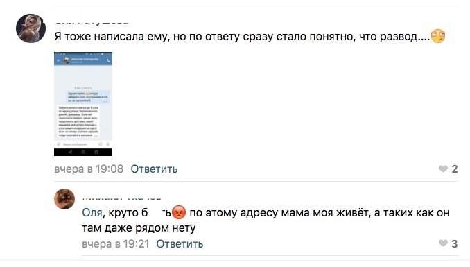 Кстати, после того как Татьяна разместила во «ВКонтакте» пост о новом способе развода и скриншоты переписки с его автором, нашелся молодой человек, зарегистрированный по адресу Черняховского, 45, в Докшицах. Ради смеха парень написал пользователю Alexander Dobrogorsky, что хотел бы забрать его мебель и технику. «Даритель» ответил ему так же, как остальным: «Забрать можно завтра до 9 утра по адресу улица Черняховского дом 45, Докшицы…», — и дальше про доставку и предоплату. После того как молодой человек сбросил доброму самаритянину фото своего паспорта с пропиской, Alexander Dobrogorsky удалил свои сообщения и заблокировал собеседника.