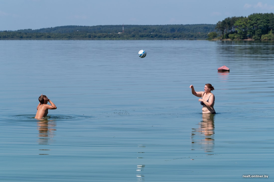 Если вы уже успели закинуть купальник на верхнюю полку, скорее доставайте его обратно: после затяжного периода хандры и мороси Беларусь снова начинает прогреваться. Завтра в отдельных регионах страны обещают до +31. В Минске тоже должно быть жарко — до +28. Учитывая непростой характер лета-2019, сложно предугадать, как долго продлится эта сказка. Пока тепло снова не отступило, мы отправились на берега главного столичного водохранилища и посмотрели на обстановку в один из последних выходных этого лета.