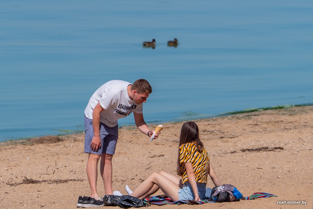 Пока белорусы не очень поняли, что происходит, поэтому людей на пляжах не слишком много. Тем не менее народ с каждым часом начинает прибывать все активнее и пляжи потихонечку уплотняются.