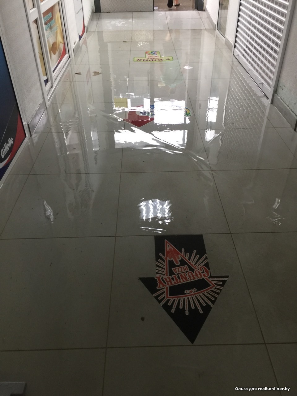 Новое здание в Студенецком переулке построено как раз под торговые точки и подобные заведения, в нем два этажа — цокольный и основной. Ночью прошел ливень — и весь он каким-то образом оказался внутри.