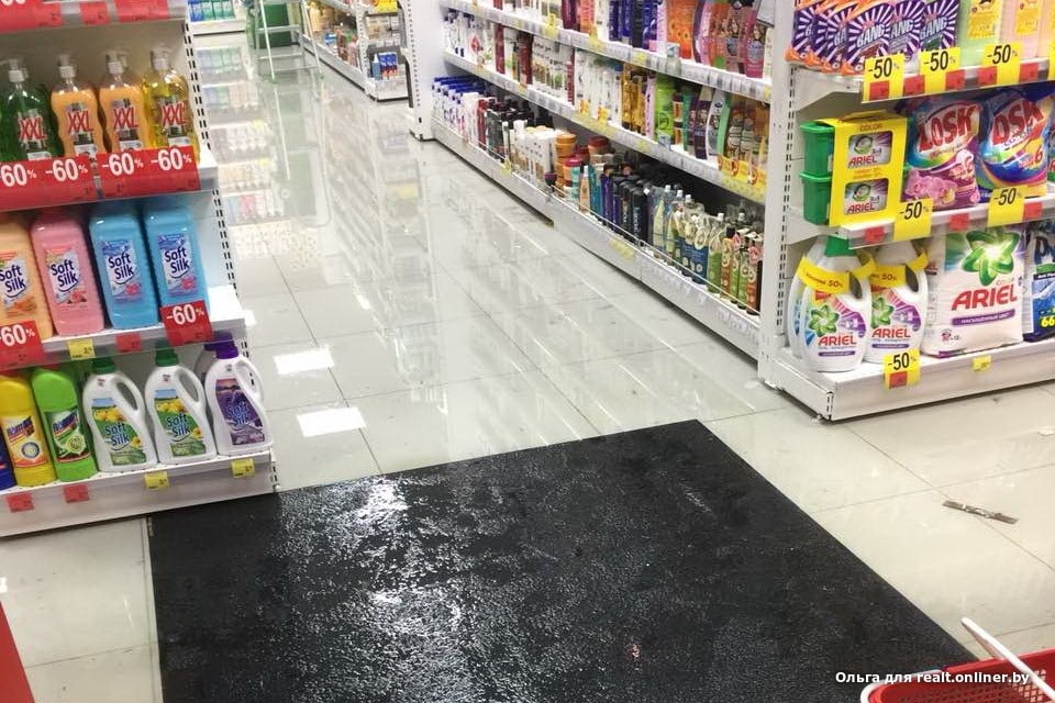 Заславль. Хозяйка парикмахерской Ольга бродит по щиколотку в воде и чуть не плачет в трубку: все опять поплыло. Говорит, периодически ее заведение, которое расположено в недавно построенном здании, мощно заливает водой, которая вытекает прямо из стены. В подтверждение присылает в меру драматические видео. Вообще-то, «плавает» не только Ольга. Плывут все, кто купил/снял помещения на цокольном этаже.