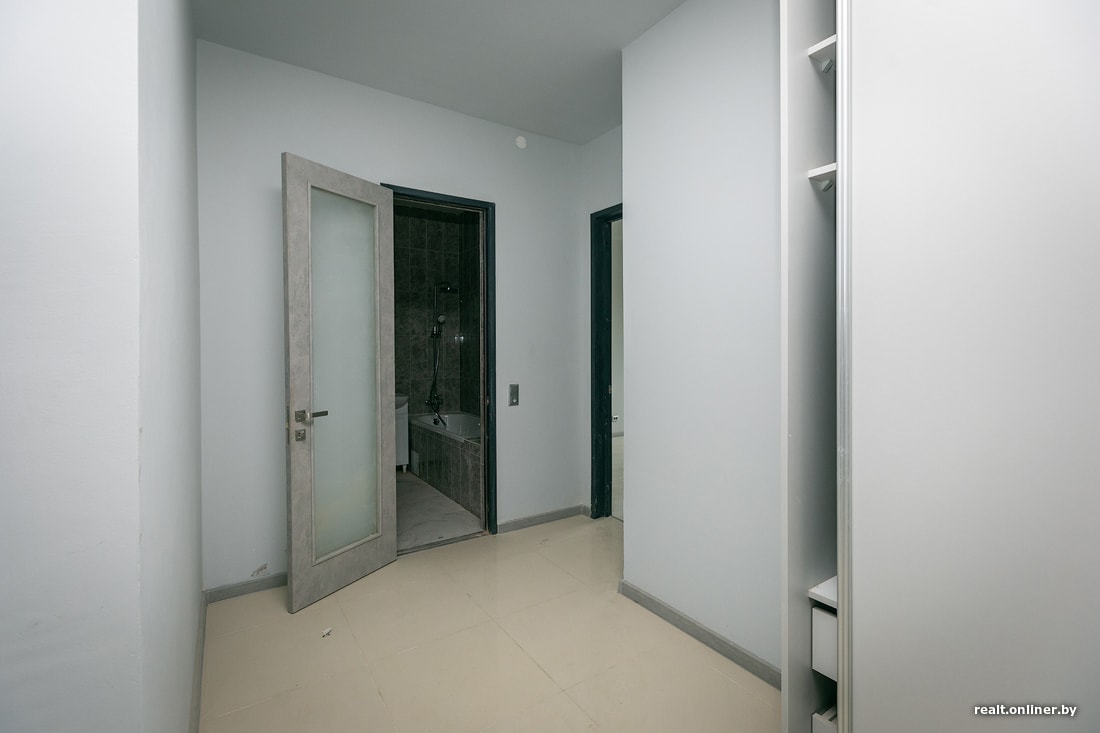 Заходим в один из подъездов, где уже выполнена отделка мест общего пользования и квартир. На каждом этаже здесь по четыре квартиры. Первое, что удивляет, — огромные по высоте входные двери. Ни в одной минской новостройке видеть такие не доводилось. Высота потолков здесь — 3,1 метра. Впечатляет!