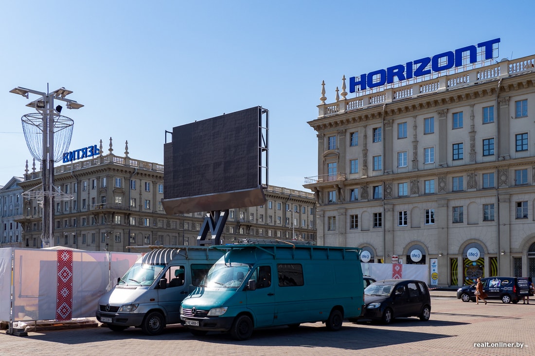 Минск можно поздравить с новым приобретением. На Октябрьской площади монтируют огромный «телевизор» — 41 «квадрат», прямо как стандартная «однушка» в «панельке». Экран возле перехода к улице Энгельса не новость, «телевизор» работает тут с незапамятных времен, большинство его, поди, и не замечали уже. И вот девайс решили сделать больше и лучше. Благо бюджет города не пострадал, и все мероприятие спонсировала компания, которая занимается размещением рекламы на экранах.