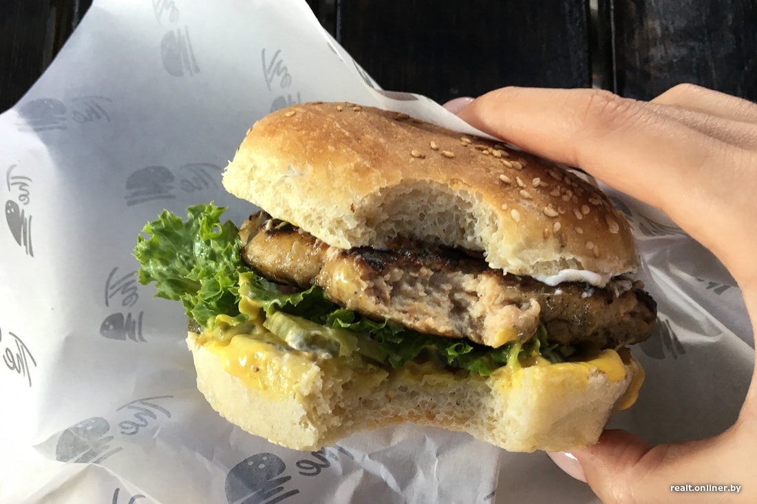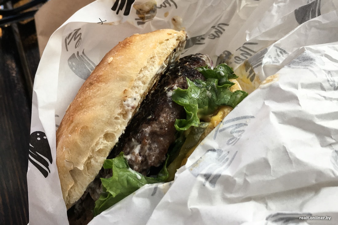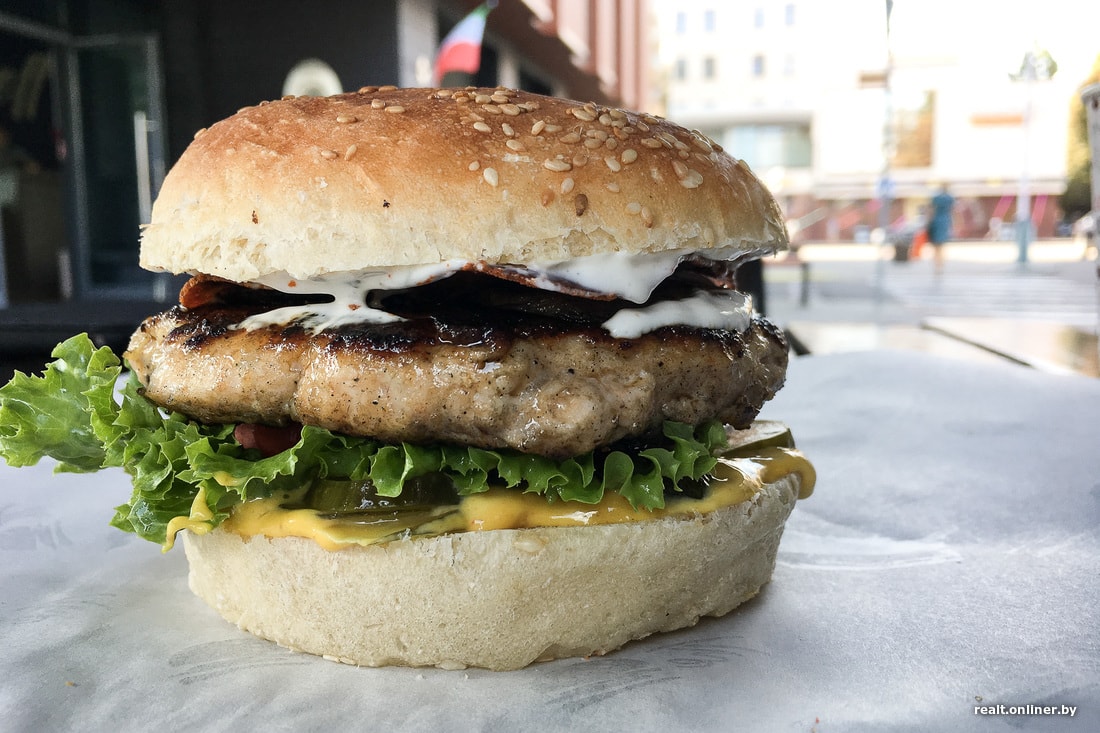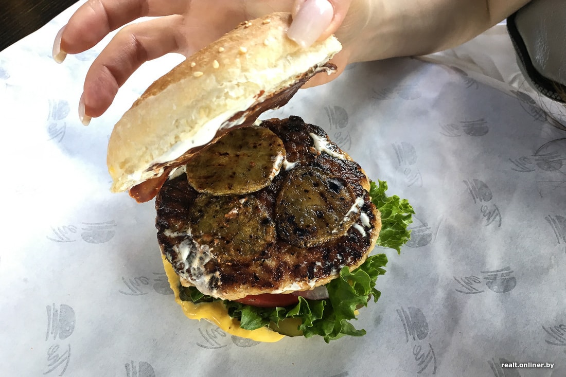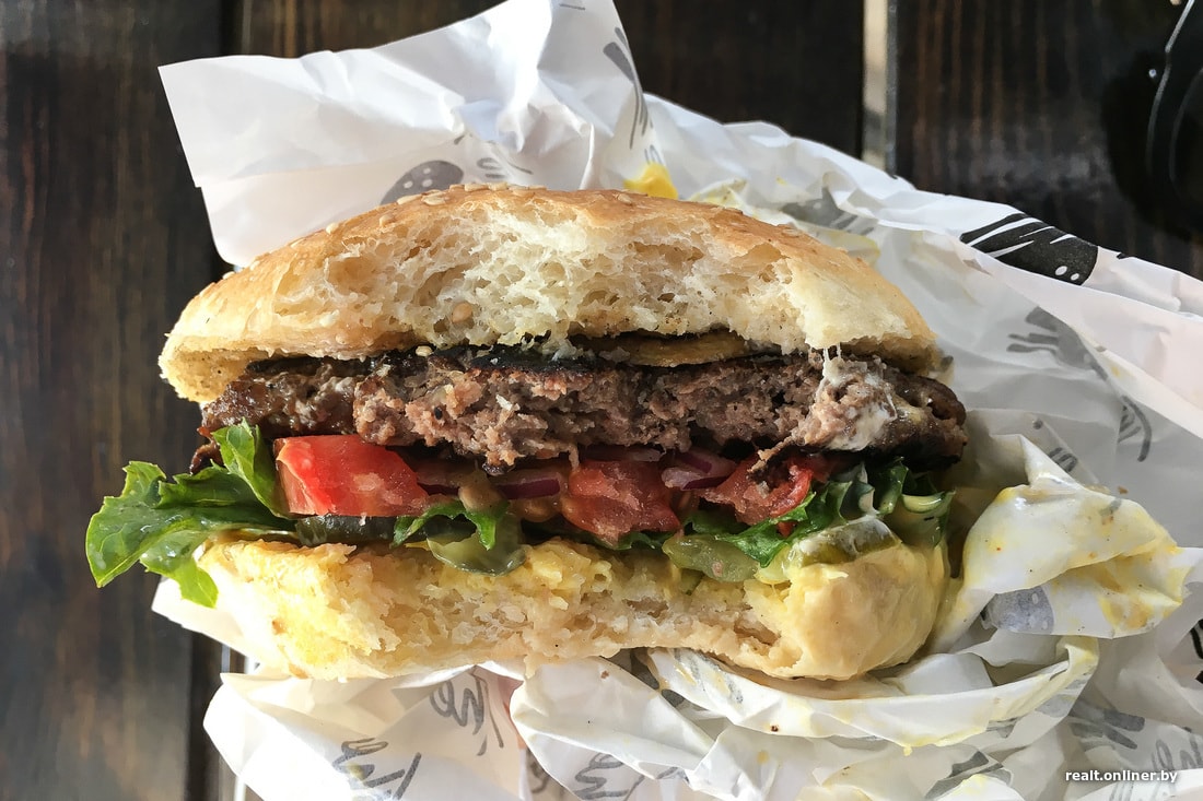 По словам хозяина, продукт — абсолютно натуральный. Мясо для котлет замешивается вручную и хранится строго 48 часов, не замораживается. Булка делается по авторскому рецепту и напоминает армянский хлеб матнкаш. Бургеры готовятся на открытом огне, как когда-то на Минском море.