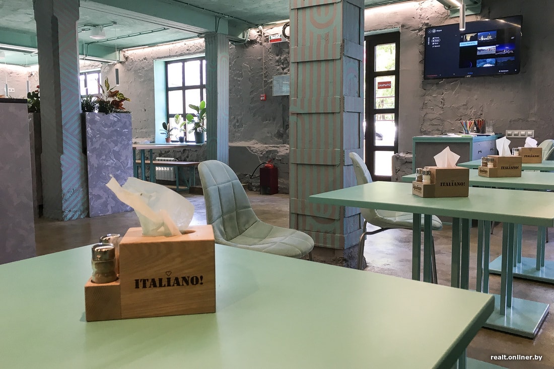 Совладелец Italiano — итальянец. Тут предлагают пиццу, пасту и ризотто в интерьере, который прямо не отсылает к Италии, а просто красив.