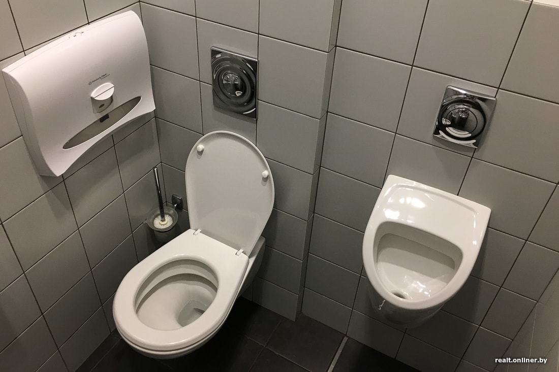 Санузел, скажем прямо, так себе. Вероятно, достался по наследству от расположенных здесь раньше офисов.