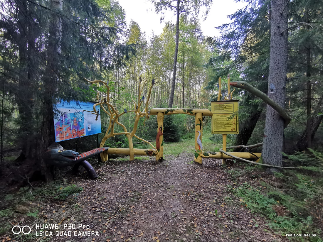 Вглубь леса ведет мягкая дорожка, покрытая мхом. Сосновый лес сменяется ельником, зарослями ольхи, низинным болотом. По пути встречаются кормушки для животных и неведомые городскому жителю следы лесных обитателей. Кажется, вот-вот из чащи выйдет олень или спикирует из гнезда бородатая неясыть.