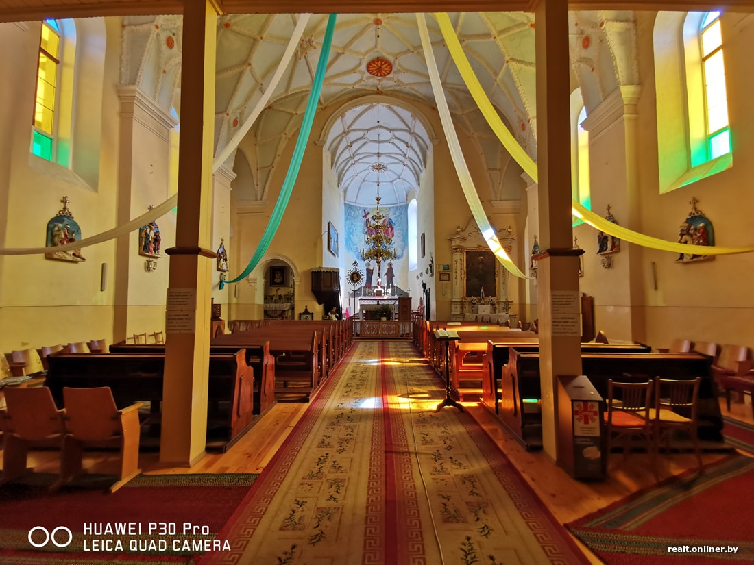В интерьере сохранились деревянные скульптуры XVIII века и лепнина на потолке времен Раздивиллов.